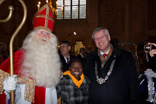 Begin december komt Sharon voor een paar dagen naar Deventer. Het is heel erg leuk om haar ons Nederlandse leven te laten zien. We nemen haar mee naar de intocht van Sinterklaas. Ik maak een afspraakje met de Goedheiligman voor een foto. Net op dat moment is ook de burgemeester in de buurt, en hij poseert even mee.
